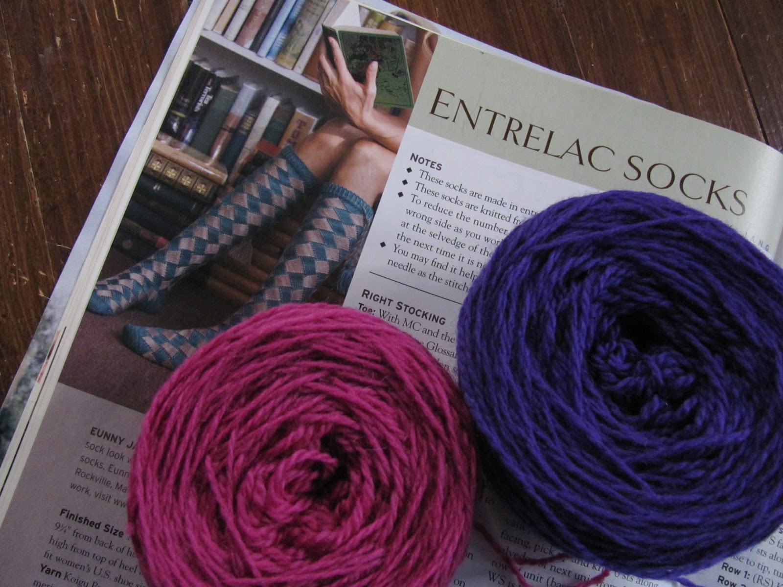 However, they are temporarily going on hold, I think. I want to participate in this month's Sock Knitters Anonymous sockdown challenge on Ravelry. While I have until the end of May to finish April's socks, these are going to be knee socks in a technique that I have never tried before, entrelac. While I think it's safe to assume that it will not take me an entire two months to complete these socks, I also don't want to be rushed if it turns out to be more difficult and/or time-consuming than I expected. I do really hate leaving the striped socks unfinished though. I'm such a one-project-at-a-time knitter; I hate the thought of this pair sitting nearly done for the next month or two while I work on the entrelac socks. (I can always use the striped ones as more relaxing knitting if the attention needed for the entrelac requires an occasional break.)